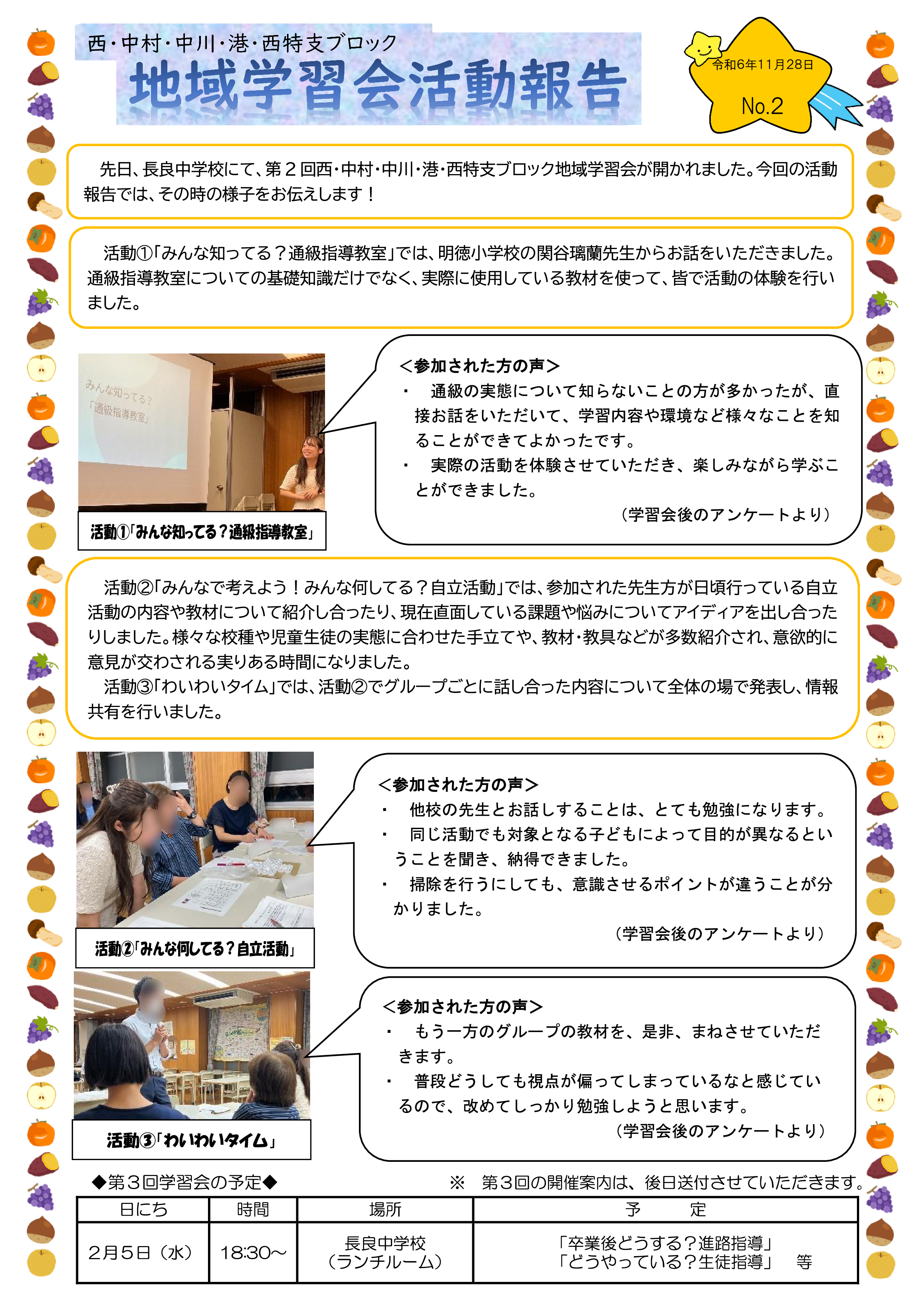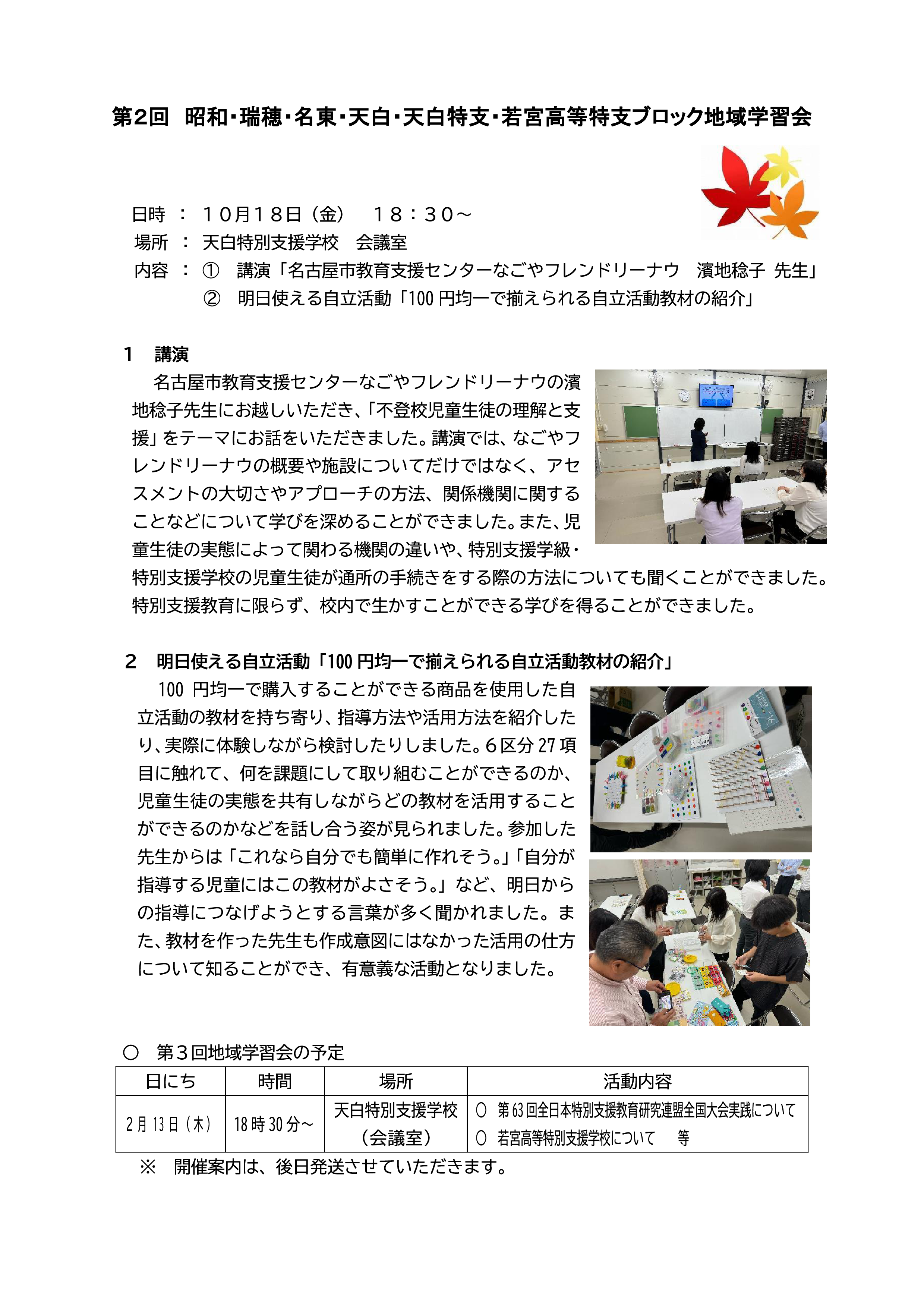令和6年10月に名古屋市を4地域に分かれた各ブロックで地域学習会を行いました。