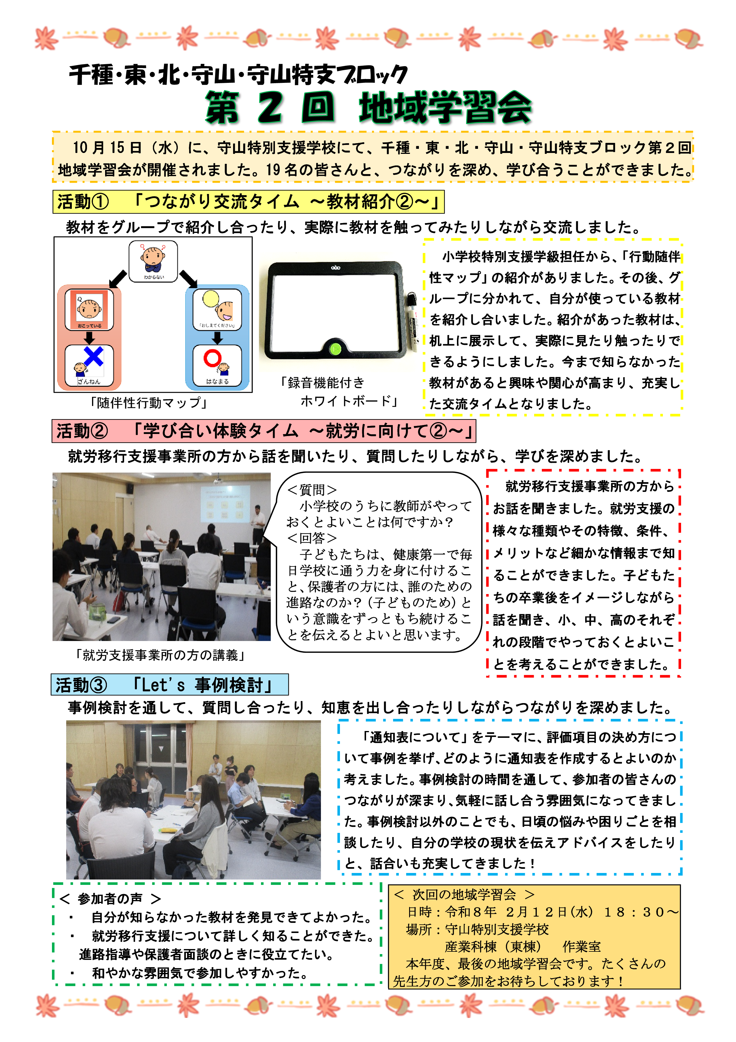 令和7年10月に名古屋市を4地域に分かれた各ブロックで地域学習会を行いました。